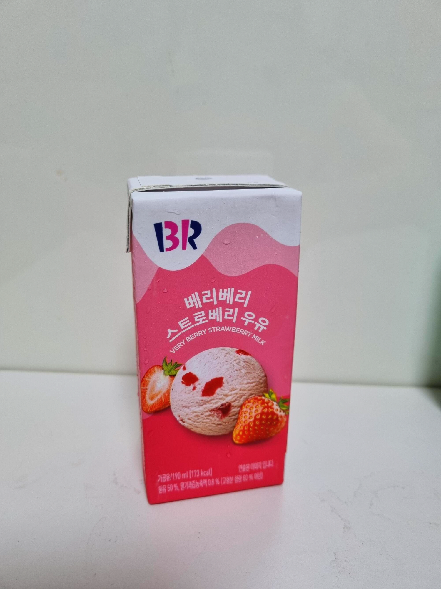 다음은 무난한 스트로베리 우유를 먹었다.총내용량은 190ml(173kcal) 짜리이고 원유가 50% 들어가 있는 우유라고 한다.